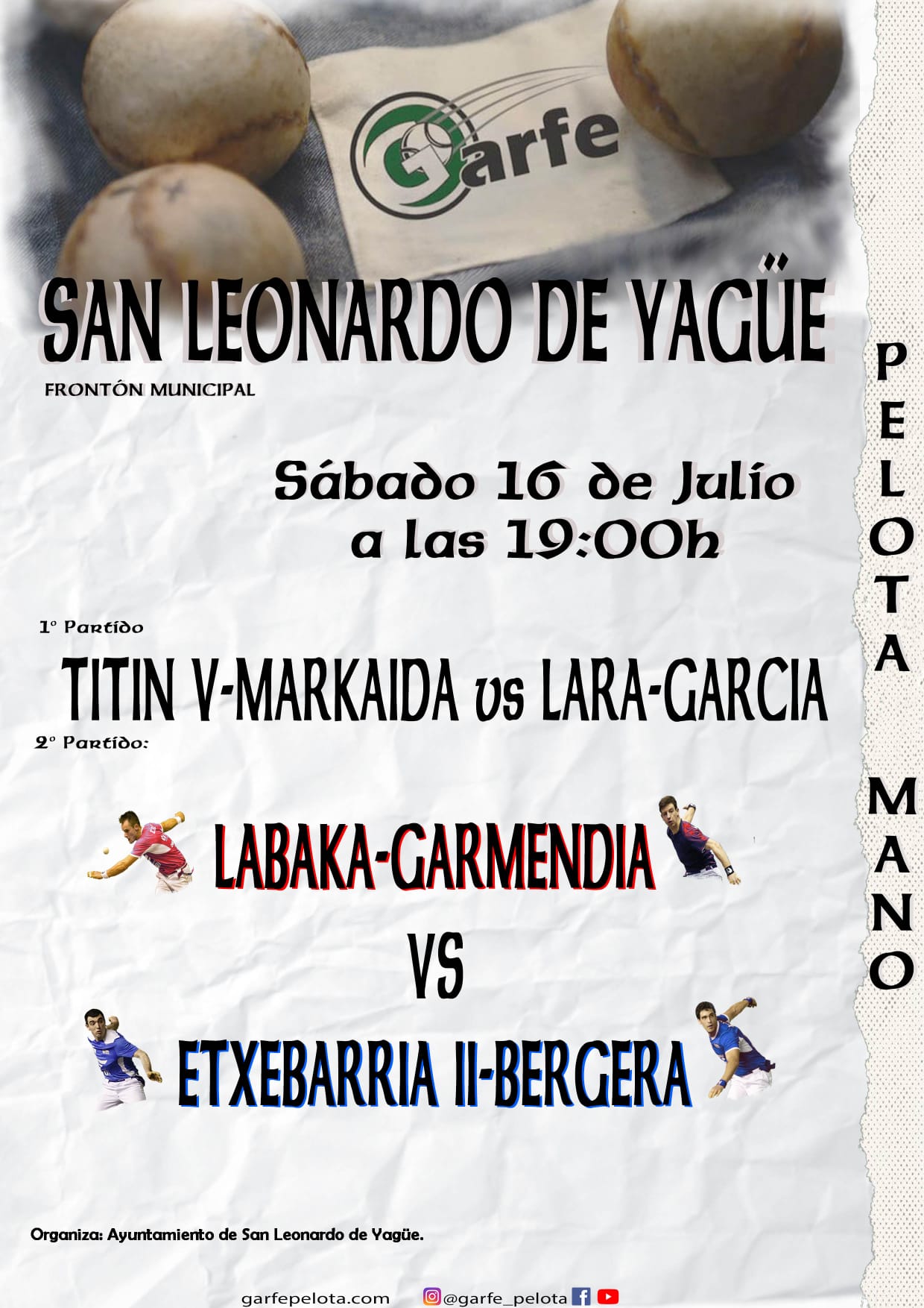 El propio sábado 16 de julio, a las 19h se podrá disfrutar en el polideportivo municipal de interesantes partidos de pelota con grandes profesionales: