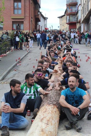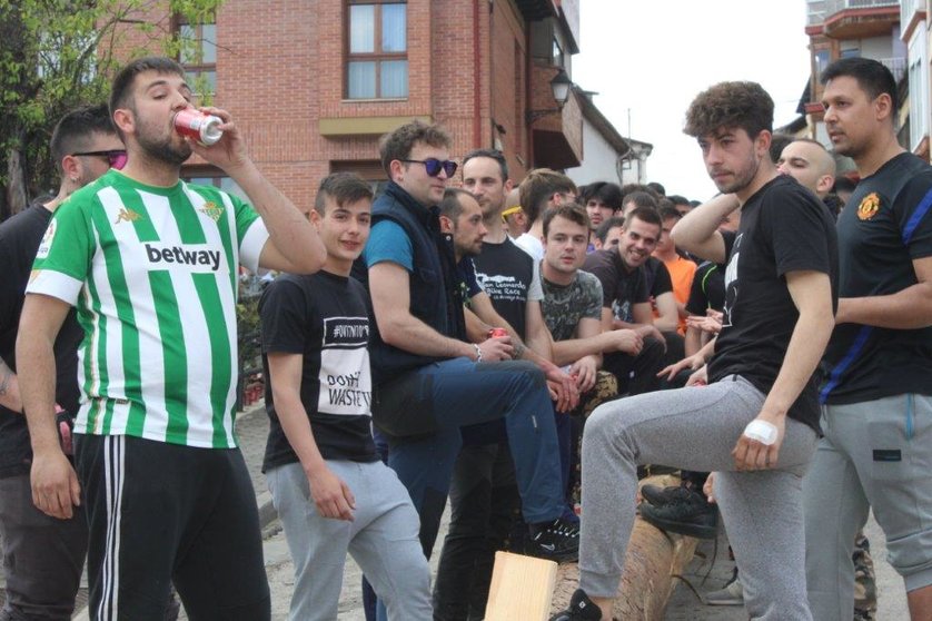 El primer día de mayo, los mozos suben al monte para, con ayuda de los bueyes ir bajando poco a poco el Mayo a pingar, pero antes de llegar al pueblo, se hace una parada para almorzar y reponer fuerzas.
