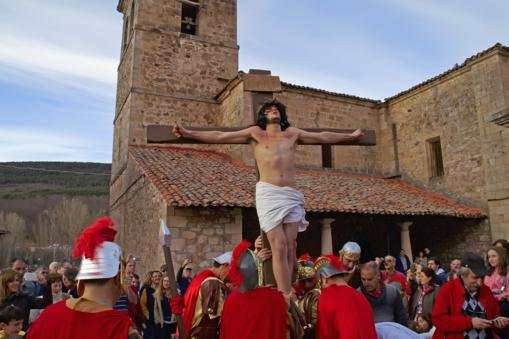 La procesión partió de la ermita del Santo Cristo, a 500 metros del pueblo. El atractivo paisajístico es una de las bazas fundamentales para conseguir que la gente llegue desde distintos lugares a la representación. La orilla del Duero, la verde ladera junto a la que discurre el trayecto y la hilera de gente que se agolpa a ambos lados del camino animan a la participación a los ojos del visitante.