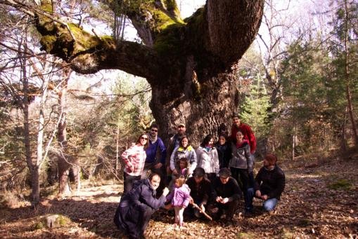 A las once de la mañana del domingo, Roberto Serrano enseñó a utilizar nuestros móviles para geolocalizar parajes singulares de la comarca y establecer rutas que poder recorrer posteriormente. Esta vez contemplamos el impresionante Roble Milenario y paseamos por la Dehesa de Tolbaños de Abajo.